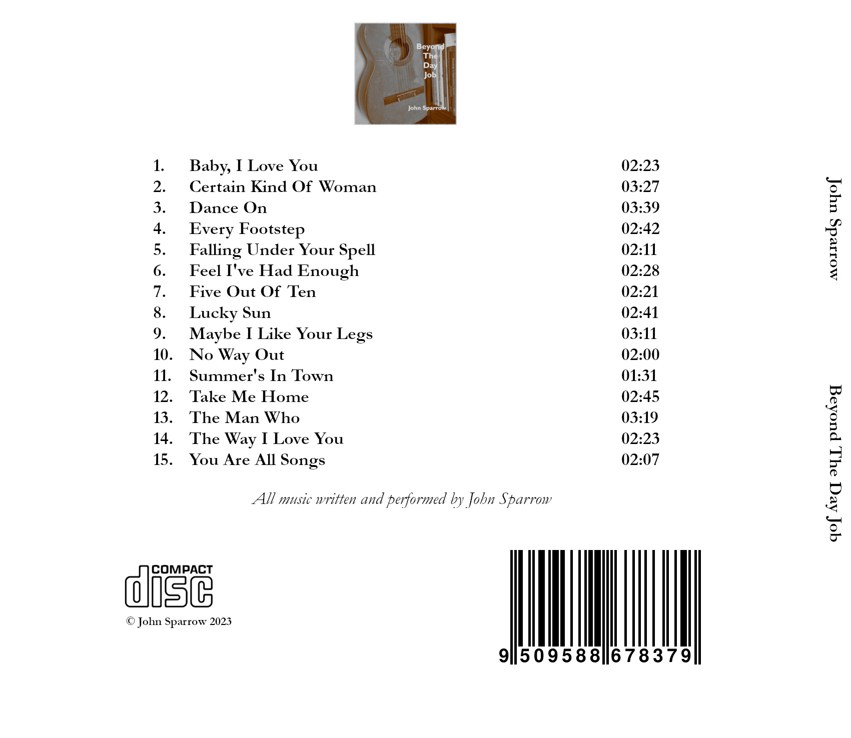 Beyond The Day Job is an album of songs written by John Sparrow in his late twenties and thirties whilst working full time as a university lecturer and psychologist.