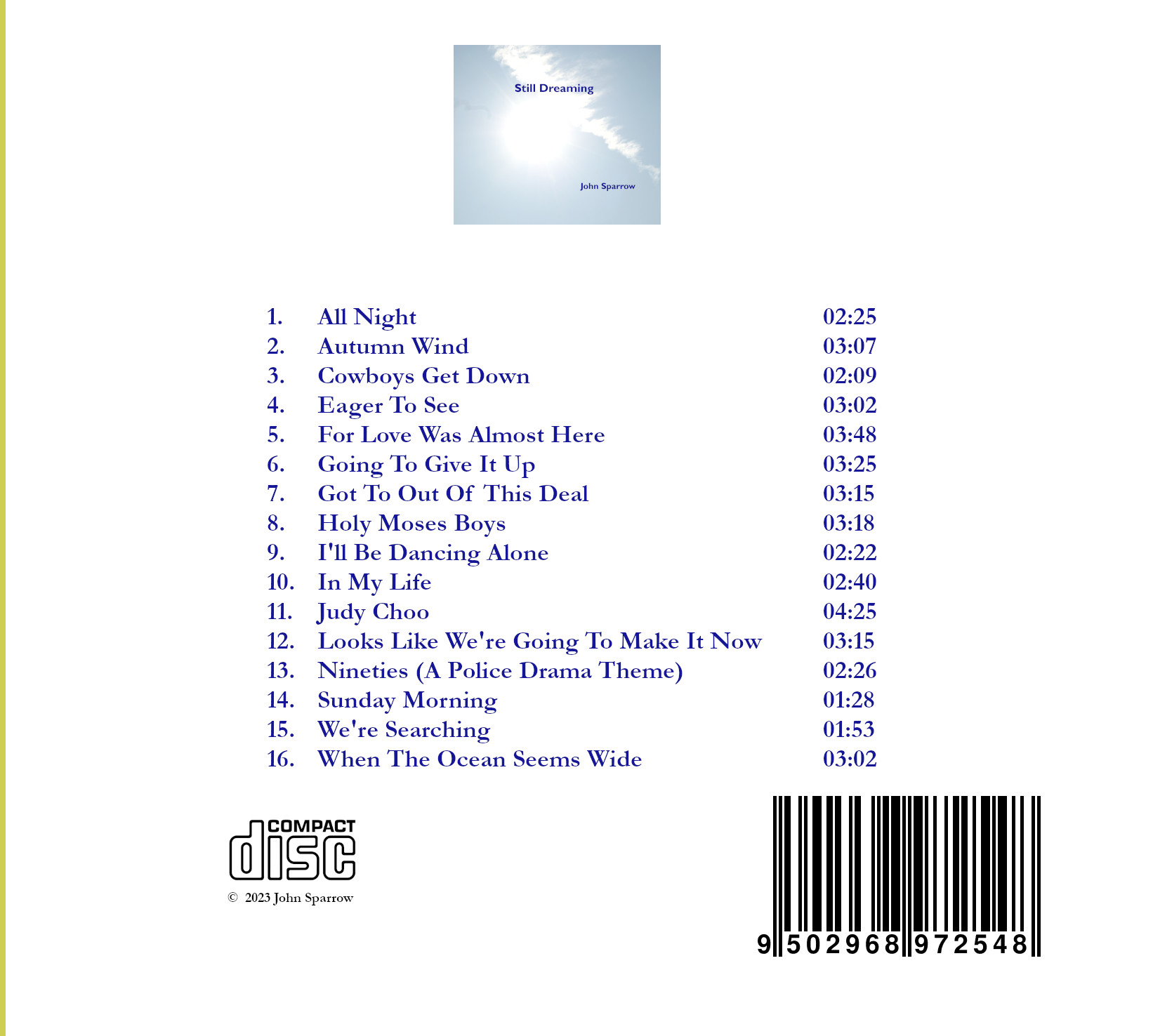 Still Dreaming is an album of songs written by John Sparrow in the 1990s whilst working full time as a university professor and psychologist.